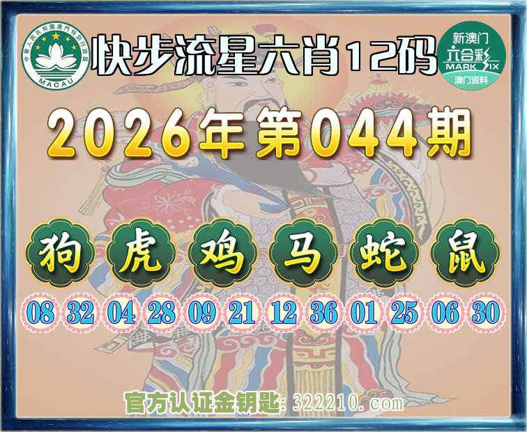 主题: 044期:金钥匙高手【快步流星🔥六肖12码】正版澳彩