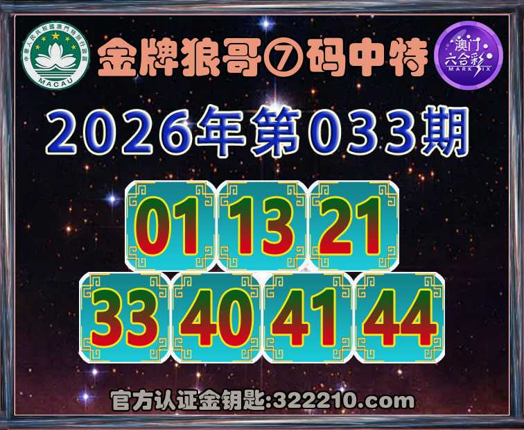 033期:《金牌狼哥》 🥬⑦码中特🥬【01.13.21.33.40.41.44】开:41
