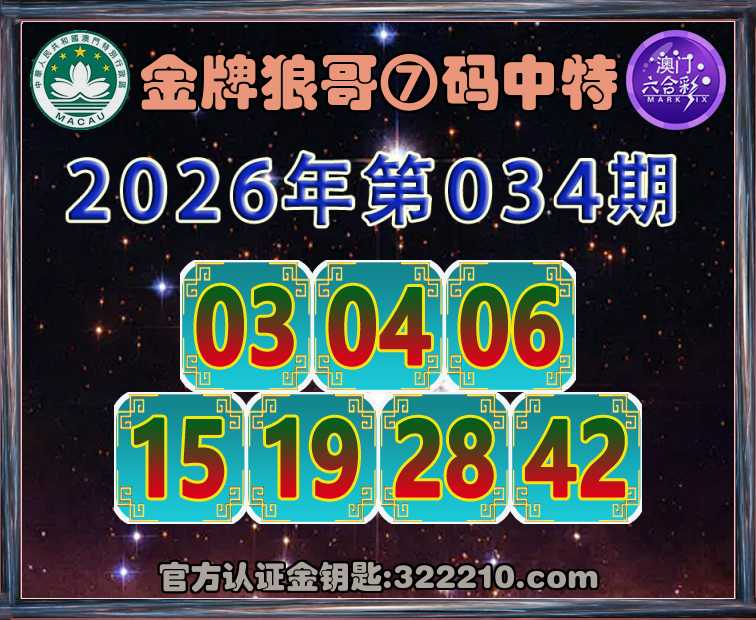 034期:《金牌狼哥》 🥬⑦码中特🥬【03.04.06.15.19.28.42】开:19