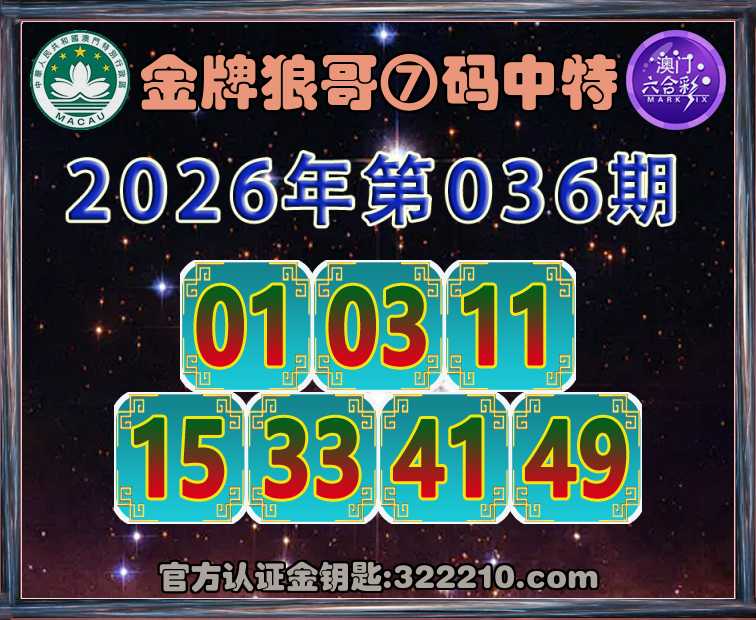 036期:《金牌狼哥》 🥬⑦码中特🥬【01.03.11.15.33.41.49】开:01