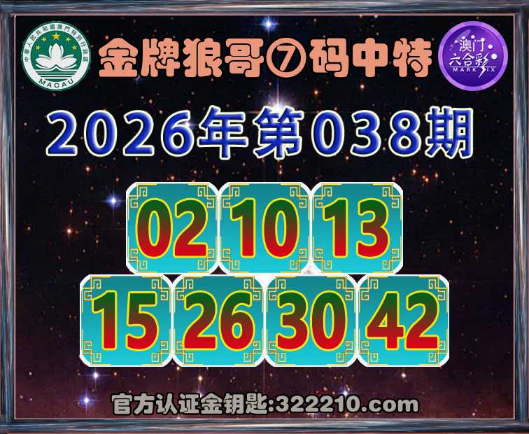 038期:《金牌狼哥》 🥬⑦码中特🥬【02.10.13.15.26.30.42】开:42