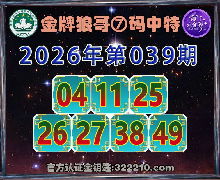 039期:《金牌狼哥》 🥬⑦码中特🥬【04.11.25.26.27.38.49】开:11
