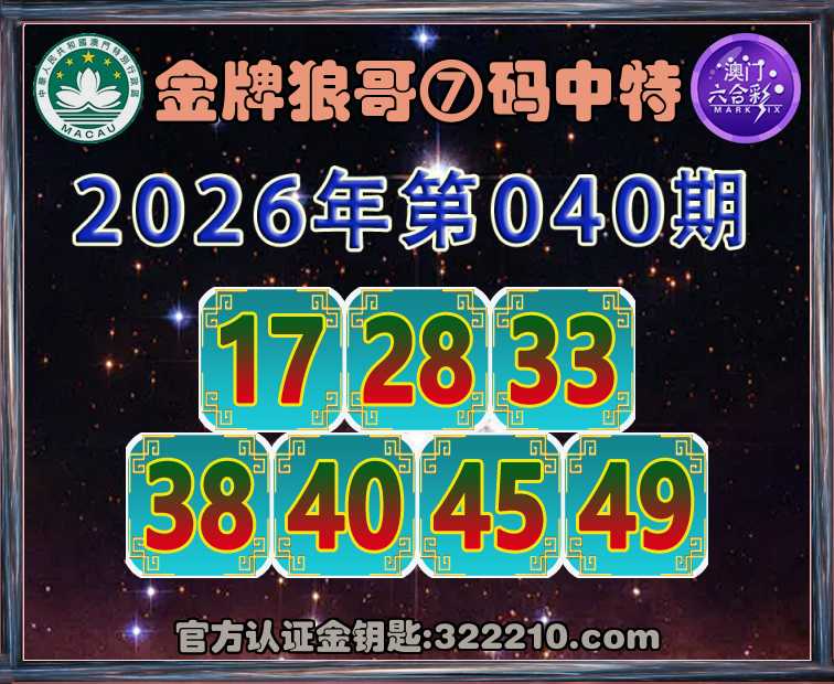 040期:《金牌狼哥》 🥬⑦码中特🥬【17.28.33.38.40.45.49】开:28