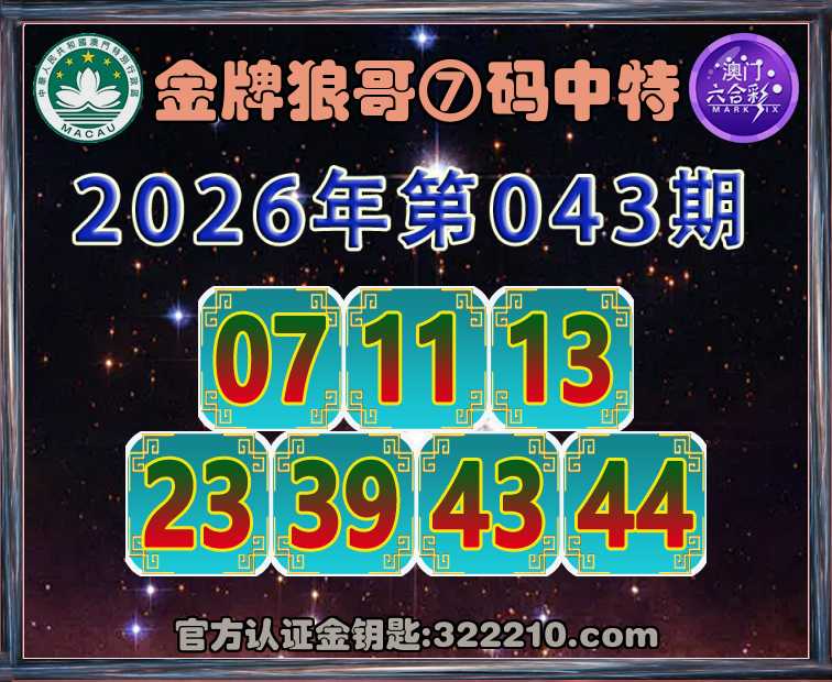 043期:《金牌狼哥》 🥬⑦码中特🥬【07.11.13.23.39.43.44】开:13